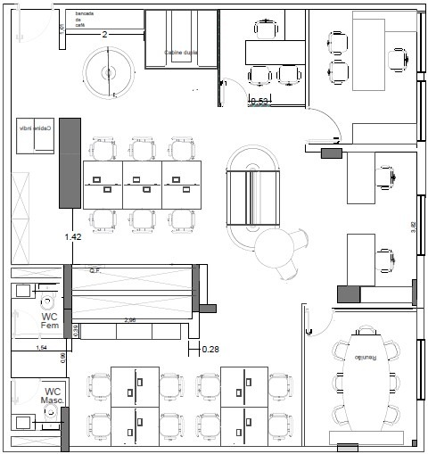 Projeto desenvolvido com foco em organização espacial, eficiência operacional e separação clara entre áreas de trabalho e ambientes de apoio.