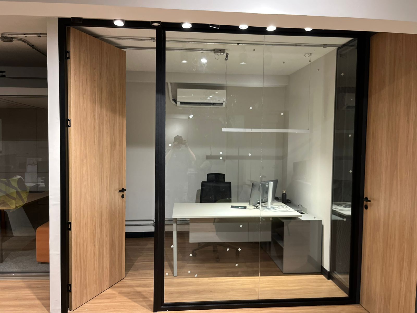 Ambiente corporativo com necessidade de conciliar áreas abertas de trabalho com salas privativas para funções específicas. O projeto exigia organização clara, controle visual e adaptação a diferentes usos simultâneos.